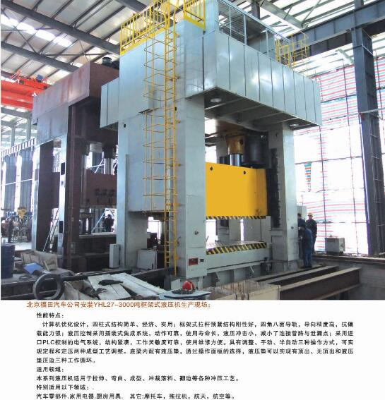 公司能夠為市場提供42大類500余個品種的標準液壓機和非標專用、精密伺服液壓機。產品廣泛應用于汽車、航天、粉末冶金、船舶、輕工、建筑、電子、家用電器等行業(yè),并代表著我國通用液壓機的發(fā)展水平。公司生產、設計、開發(fā)的液壓機產品完全能夠滿足國內不同用戶多層次的需要。